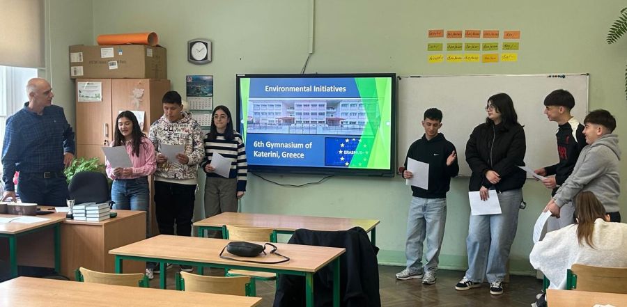 Podczas wizyty grupy uczniów z Katerini w Grecji w dniu 19.03.26 odbyły się warsztaty kulinarne w wielkanocnym klimacie. Chętni uczniowie klas siódmych przygotowywali zdrowy sałatkowy lunch dla naszych gości, którzy zrewanżowali się greckimi specjałami m.in. grecką sałatką i tzatzikami. Współpracy towarzyszyły konwersacje po angielsku, udzielanie instrukcji, nazywanie składników i czynności. Kolejną atrakcją była prezentacja i nauka tańców: polskiego poloneza z udziałem klas 8. oraz trzech tańców macedońskich i greckich. Młodzież integrowała się również, grając w siatkówkę. W klasie goście przedstawili prezentację na temat recyklingu w ich mieście i szkole; odbyły się też rozmowy na temat wyzwań w tym zakresie. Cieszymy się, że wizyta greckiej młodzieży w naszej szkole przebiegła w tak miłej i twórczej atmosferze. Przekonaliśmy się jeszcze raz, że wspólne zajęcia plastyczne, aktorskie - nawiązujące do greckiego dziedzictwa kulturowego, warsztaty kulinarne, taneczne i zajęcia sportowe niezwykle łączą, niezależnie od języków, którymi posługują się dzieci.