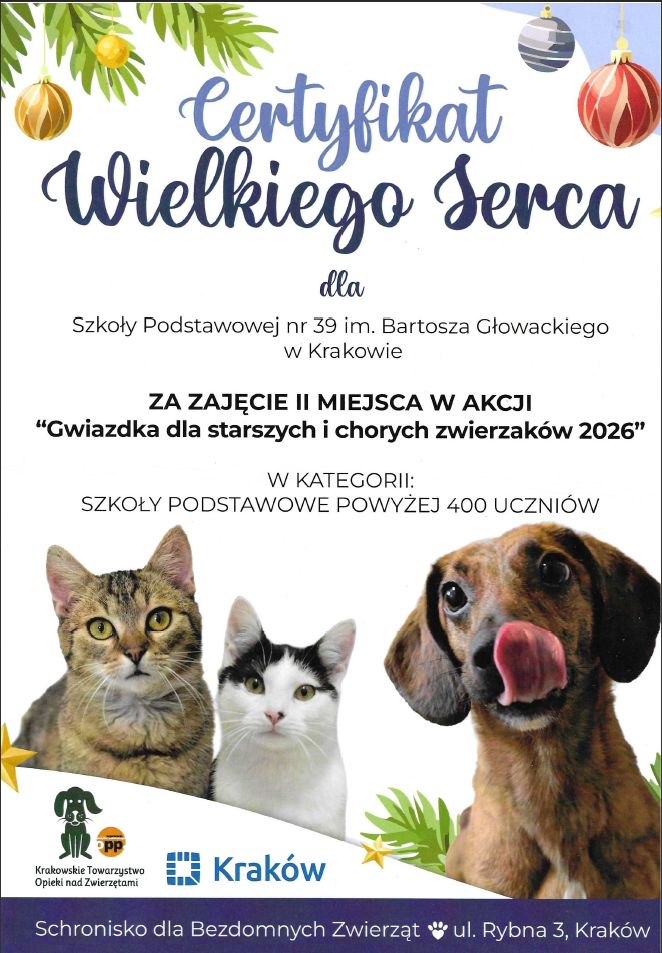 Dzień Patrona Szkoły Podstawowej nr 39 - Bartosza Głowackiego, odbył się 31.03.2026 r. Akademię szkolną przygotowała klasa VA wraz z wychowawczynią Joanną Lis oraz chór pod przewodnictwem pani Karoliny Stasiowskiej. Program artystyczny przyjął formę porannej „śniadaniówki”. Gośćmi specjalnymi byli Bartosz Głowacki, Tadeusz Kościuszko oraz kosynierzy. W ich role, a także w role prowadzących, wcielili się uczniowie. Akademia miała na celu przybliżyć bitwę pod Racławicami oraz wydarzenia jej towarzyszące. Była nie tylko okazją do uczczenia pamięci Bartosza Głowackiego, ale również ciekawą lekcją historii i patriotyzmu dla całej społeczności szkolnej.