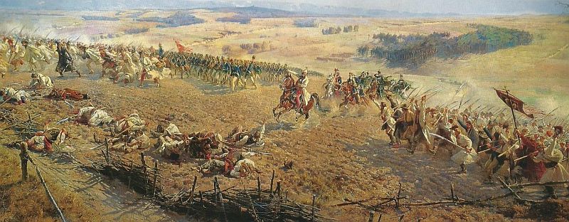 "Niedaleko Krakowa rozegrała się pierwsza bitwa powstania kościuszkowskiego. Było to 4 kwietnia 1794 roku. Wojsko powstańcze liczyło wówczas zaledwie 6000 ludzi (w tym 2000 chłopów, uzbrojonych tylko w kosy i piki). Oddziały rosyjskie miały podobną liczebność, ale były lepiej wyszkolone i uzbrojone (m.in. mieli działa). Bitwa rozpoczęła się około godziny 15-ej. Polacy nie mogli przełamać sił wroga, tymczasem do pola bitwy zaczęła się zbliżać druga kolumna wojsk rosyjskich. Sytuacja stawała się dla Polaków groźna. Wówczas Kościuszko postanowił wprowadzić do walki pozostawionych w rezerwie kosynierów. Krakowscy kosynierzy wykazali się ogromną odwagą. Wojciech Bartos i Stach Świstacki dotarli do rosyjskich armat i własnymi czapkami pogasili płonące lonty, tak, by działa nie mogły wypalić. W pierwszym ataku kosynierzy zdobyli aż 11 dział. O godzinie ósmej wieczorem bój był zakończony, a Rosjanie wycofali się... ...zaraz po bitwie Kościuszko najwaleczniejszego z kosynierów, Wojciecha Bartosa ze wsi Rzędowice mianował chorążym regimentu /czyli pułku/. Nadał mu również imię Bartosz oraz nazwisko – Głowacki. /J.K./