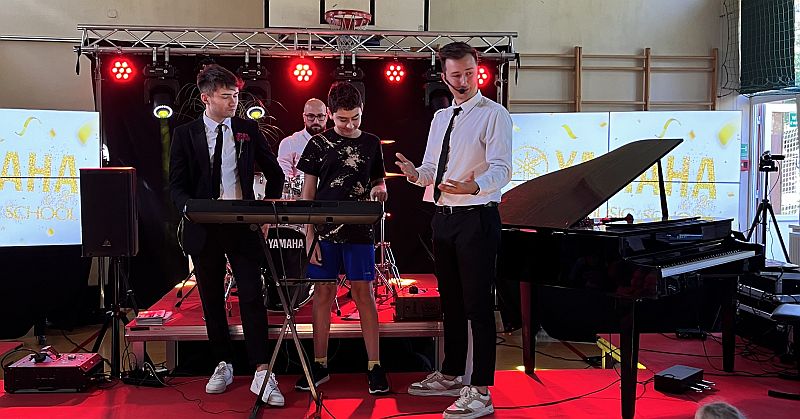 W miniony czwartek (18.09.2025) odbył się pierwszy z czterech koncertów edukacyjnych przeprowadzanych przez szkołę muzyczną Yamacha. Podczas niego uczniowie poznali instrumenty klawiszowe, takie jak pianino czy też keyboard. Serdecznie dziękujemy za otrzymaną dawkę wiedzy oraz śmiechu. Nie możemy się doczekać kolejnych spotkań.