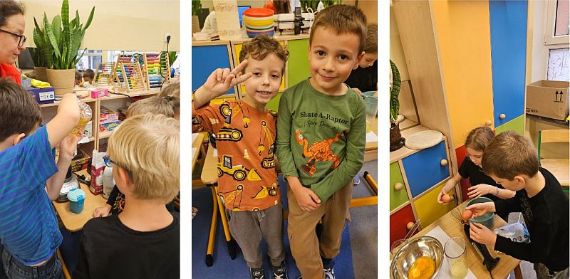Z okazji Dnia Chłopaka uczniowie klasy 1a wzięli udział w wyjątkowych zajęciach kulinarnych. Dzięki zaangażowaniu i pomocy rodziców dzieci mogły własnoręcznie przygotować pyszne gofry. Uczniowie dowiedzieli się, jakie składniki są potrzebne do ich wykonania, doskonalili umiejętności krojenia, mieszania i miksowania, a przy tym świetnie się bawili.