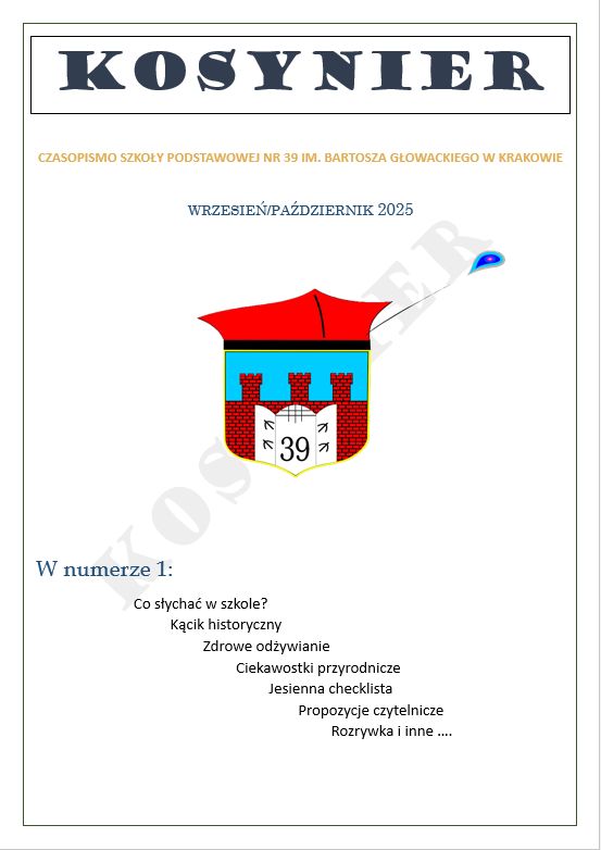 Redakcja szkolnej gazetki "KOSYNIER" oddaje w Wasze ręce szóste, a pierwsze w tym roku szkolnym wydanie tego czasopisma. Dokument jest plikiem PDF i ma rozmiar ~2,5 MB.