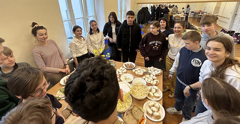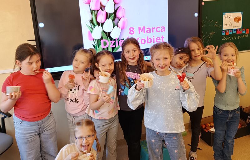 Podczas wizyty grupy uczniów z Katerini w Grecji w dniu 19.03.26 odbyły się warsztaty kulinarne w wielkanocnym klimacie. Chętni uczniowie klas siódmych przygotowywali zdrowy sałatkowy lunch dla naszych gości, którzy zrewanżowali się greckimi specjałami m.in. grecką sałatką i tzatzikami. Współpracy towarzyszyły konwersacje po angielsku, udzielanie instrukcji, nazywanie składników i czynności. Kolejną atrakcją była prezentacja i nauka tańców: polskiego poloneza z udziałem klas 8. oraz trzech tańców macedońskich i greckich. Młodzież integrowała się również, grając w siatkówkę. W klasie goście przedstawili prezentację na temat recyklingu w ich mieście i szkole; odbyły się też rozmowy na temat wyzwań w tym zakresie. Cieszymy się, że wizyta greckiej młodzieży w naszej szkole przebiegła w tak miłej i twórczej atmosferze. Przekonaliśmy się jeszcze raz, że wspólne zajęcia plastyczne, aktorskie - nawiązujące do greckiego dziedzictwa kulturowego, warsztaty kulinarne, taneczne i zajęcia sportowe niezwykle łączą, niezależnie od języków, którymi posługują się dzieci.