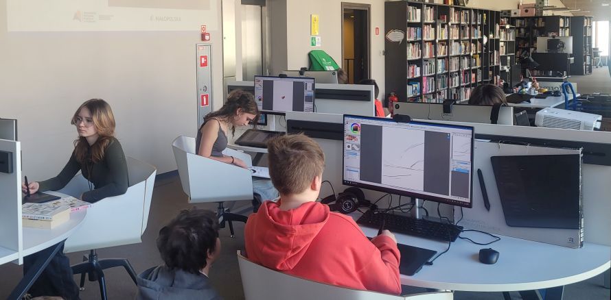 19 marca klasa 7b w Artetece wzięła udział w warsztatach pt. "Kreator komiksów". Uczniowie na prezentacji dowiedzieli się w jakich programach można rysować i tworzyć rysunki, na jakim sprzęcie graficznym można pracować i co można na nich stworzyć. Pani Marcelina prowadząca warsztaty pokazała Nam swoje pracy oraz na żywo przy sugestiach uczniów wykonała bardzo ciekawy rysunek. Po skończonych warsztatach, a przed powrotem do szkoły na lekcję mieliśmy jeszcze chwilę na rozrywkę🙂