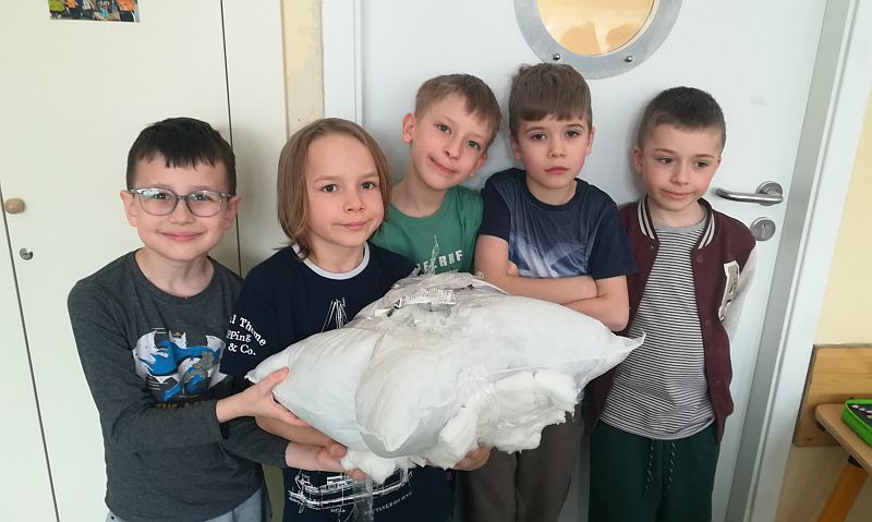 19 lutego klasa 1b wzięła udział w zajęciach metodą projektu Budujemy "jajoloty" – czyli jak nie stłuc jajka? Uczniowie starannie się przygotowali, konsultując między innymi z rodzicami pomysły i wykorzystane materiały. Następnie samodzielnie dobrali się w małe grupy i przystąpili do dzieła. Pracowali zgodnie i z wielkim zaangażowaniem. Później nastał czas próby jajolotów. Wyłonione przez zespół dzieci zrzucały pojazdy z pierwszego piętra na parter. Na cztery jajoloty , trzy spełniły swoje zadanie i można było wydobyć niestłuczone jajka. Wspaniale zachowała się drużyna, której jajko się rozbiło. Po początkowym smutku, dziewczyny porozmawiały ze sobą, ustaliły, co mogło być przyczyną braku sukcesu i doszły do wniosku, że porażka jest pierwszym krokiem do odniesienia sukcesu w przyszłości. Wszystkim uczestnikom projektu gratulujemy. Współpraca się opłaca.