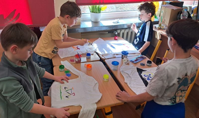 W ramach działań STARS - "Rowerem do szkoły" 3 marca w klasach pierwszych odbyły się zajęcia z cykloedukacji - malowanie koszulek, które przeprowadził współpracujący od lat z naszą szkołą edukator z fundacji Otwarty Plan, p. Maciej Skinderowicz. Uczniowie malowali farbami i pisakami własne koszulki wybranymi wzorami rowerów. Zabawa była przednia, a po przeprasowaniu i utrwaleniu wzorów, dzieci chętnie prezentowały koszulki jako stroje na zajęciach szkolnych.