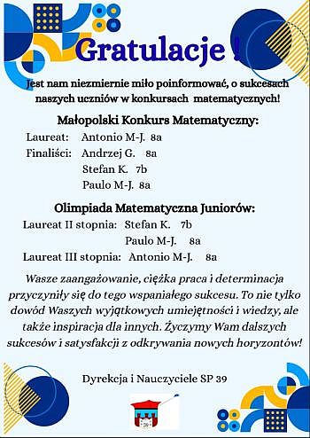 Z ogromną radością i dumą informuję, że obaj zostali laureatami konkursu!