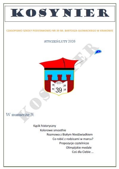 Dzień Patrona Szkoły Podstawowej nr 39 - Bartosza Głowackiego, odbył się 31.03.2026 r. Akademię szkolną przygotowała klasa VA wraz z wychowawczynią Joanną Lis oraz chór pod przewodnictwem pani Karoliny Stasiowskiej. Program artystyczny przyjął formę porannej „śniadaniówki”. Gośćmi specjalnymi byli Bartosz Głowacki, Tadeusz Kościuszko oraz kosynierzy. W ich role, a także w role prowadzących, wcielili się uczniowie. Akademia miała na celu przybliżyć bitwę pod Racławicami oraz wydarzenia jej towarzyszące. Była nie tylko okazją do uczczenia pamięci Bartosza Głowackiego, ale również ciekawą lekcją historii i patriotyzmu dla całej społeczności szkolnej.