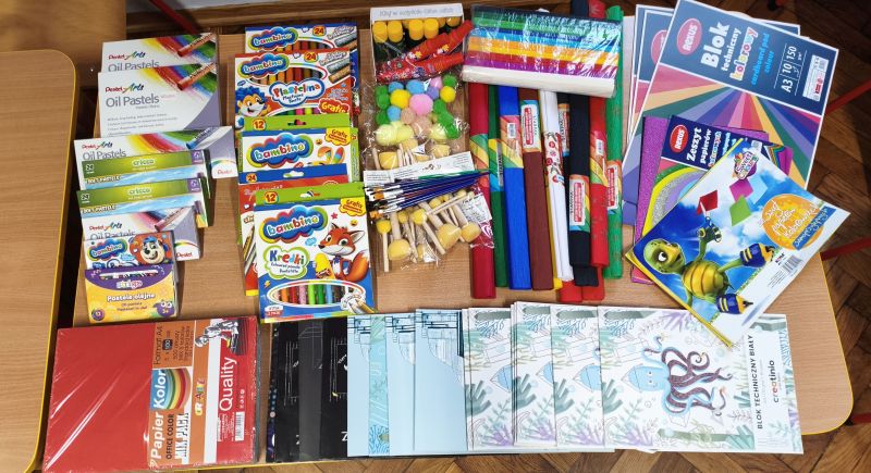 Dzieci kl.1-3 uczęszczające do świetlicy i wychowawcy świetlicy gorąco dziękują Szkolnej Radzie Rodziców za zasponsorowanie materiałów piśmienniczych, dzięki którym mogą tworzyć piękne prace i miło spędzać czas przed i po zajęciach.