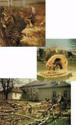 W kwietniu br. miały miejsce dwa smutne wydarzenia. Za radą dendrologów ścięto siedemdziesięcioletnią topolę rosnącą na podwórku szkolnym, gdyż chore drzewo zagrażało bezpieczeństwu dzieci bawiących się w cieniu kolosa. Wydarzenie obserwowali nauczyciele biorący tego dnia udział w ogólnopolskim strajku pracowników oświaty. Ze ściśniętymi sercami obserwowali jak elektryczne piły ścinają gałęzie, konary i pień pięknego drzewa, które szumiało kilku pokoleniom wychowanków. |